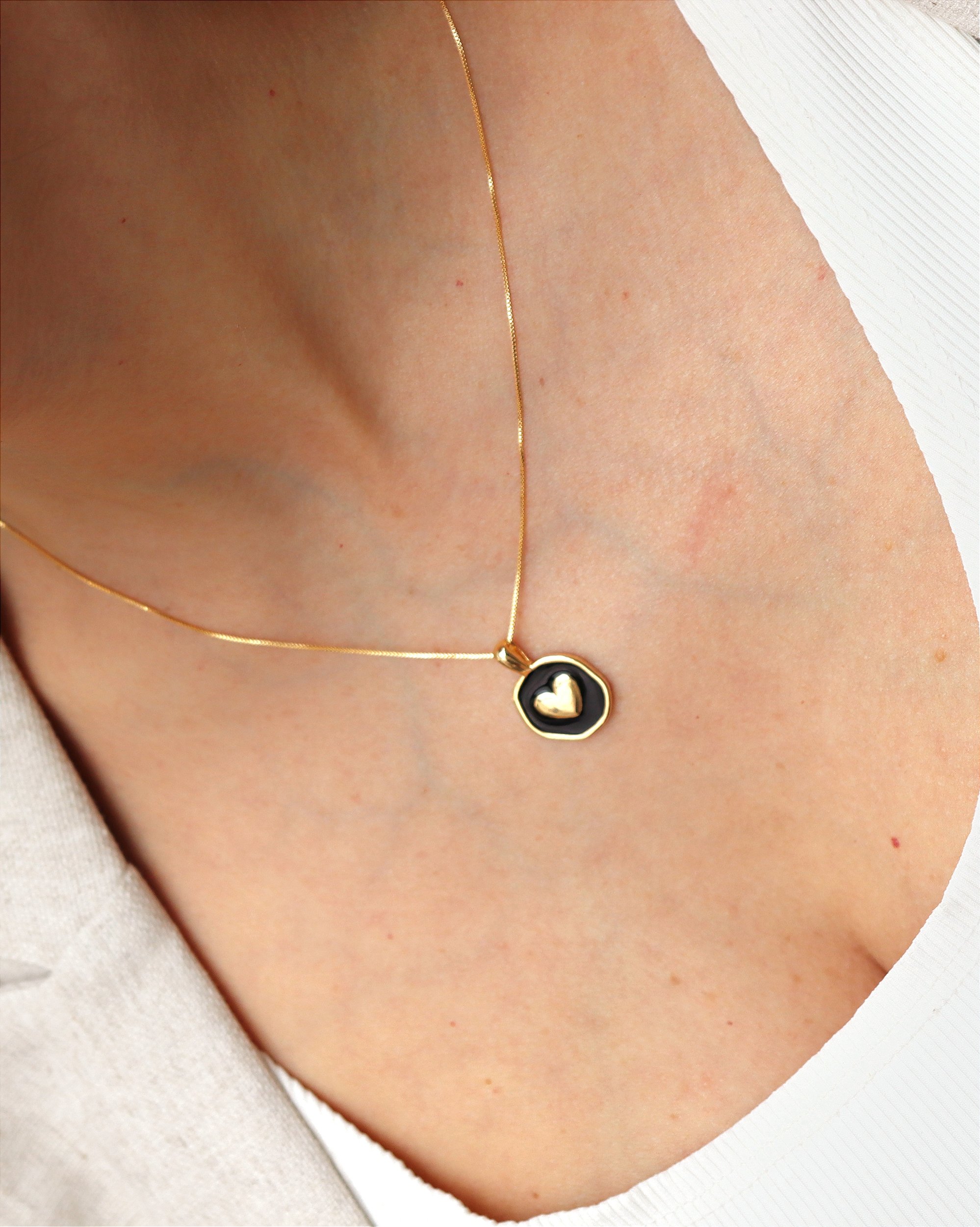 Com design elegante e romântico, o pingente em formato de coração com aplicação de resina se destaca na corrente veneziana, criando um visual delicado e atemporal. Ideal para presentear alguém especial, compor looks de trabalho ou complementar produções para um