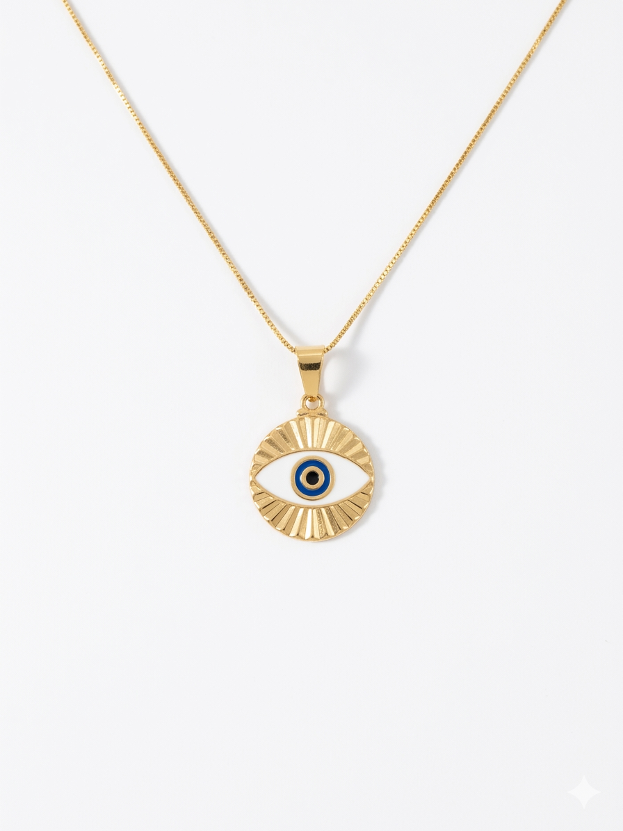 Colar Olho Grego com Resina Banhado no Ouro 18k
